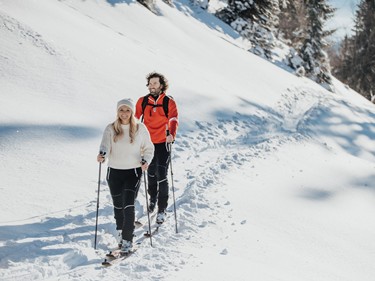 Ein wenig Kondition kann freilich nicht schaden, wenn´s auf gespurten Routen durch tiefverschneite Täler und auf sonnige Höhen geht. Aber eines ist gewiss: Die Faszination des Schneeschuhwanderns wird Sie ganz bestimmt erfassen.